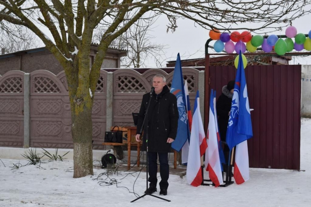 Вадим Жданов поздравил жителей с радостным событием в жизни села и отдельно отметил, что в соответствии с Поручением Президента Российской Федерации В.В. Путина работы по монтажу газопроводов-отводов до границ земельных участков для газификации домовладений выполнены без привлечения средств населения.