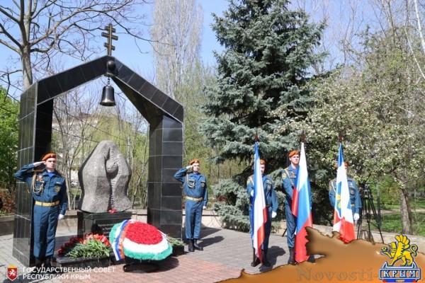 Глава Республики Крым Сергей Аксёнов, Председатель Совета министров РК Юрий Гоцанюк, министр чрезвычайных ситуаций Республики Крым Сергей Садаклиев, депутат Государственной Думы РФ Константин Бахарев, вице-спикер крымского парламента Алла Пономаренко возложили цветы к мемориалу «Жертвам Чернобыльской катастрофы»в парке имени Юрия Гагарина и почтили минутой молчания память погибших в радиационных авариях и катастрофах.