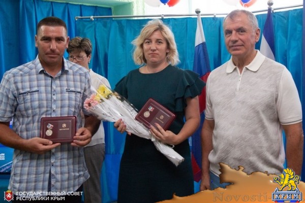 Владимир Константинов также вручил медаль «Родительская доблесть» и ценные подарки двум многодетным семьям: семье Кужильных, воспитывающих семерых детей, и семье Смешных, вырастивших пятерых детей из села Новопавловка.