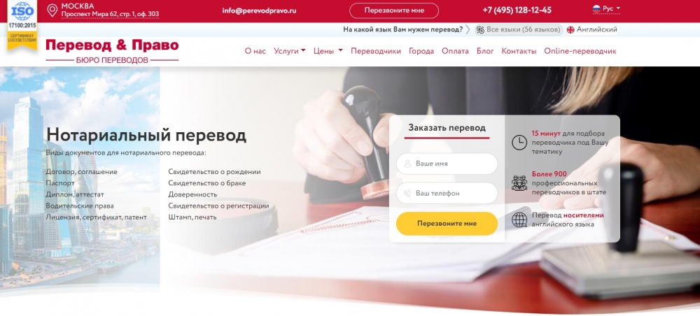А чтобы цена работы отлично сочеталась с её качеством, стоит обратиться со своими проблемами в компанию «Перевод и Право», где способны гарантировать целый ряд неоспоримых преимуществ. В этом качестве стоит упомянуть как солидный штат квалифицированных специалистов (включая лиц с дополнительным профильным образованием), так и редактирование текста носителем языка. В пользу такого сотрудничества говорят современные технологии перевода, возможность разделения тематик и направлений переводов, разумная стоимость и предоставление полного комплекса услуг https://perevodpravo.ru/services/perevod-notarialnyy.
