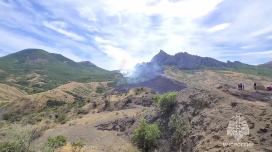 Скриншот видео Фото: ГУ МЧС по РК Симферополь, 16 июля. Крыминформ. Возгорание сухой растительности в Коктебеле локализовано на площади 40 гектаров, сообщает пресс-служба крымского главка МЧС. Общая...