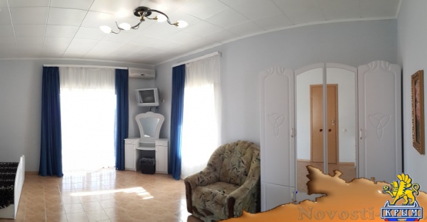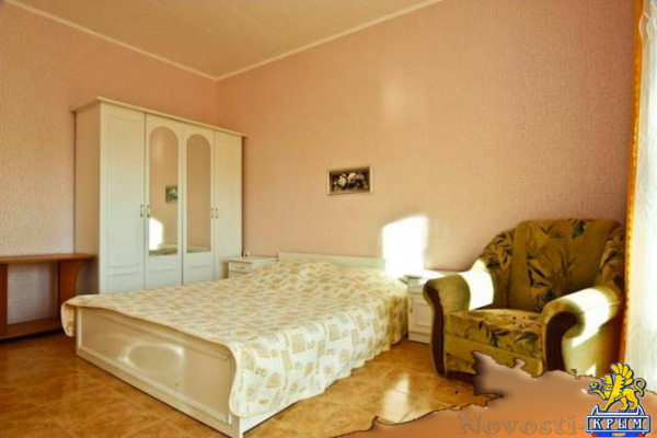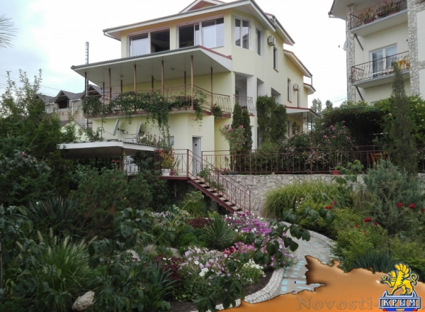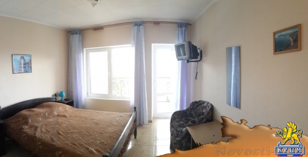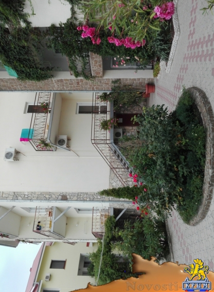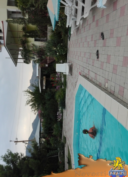 Отличное место для отдыха на Новый Год и новогодние праздники в Крыму 2016, и летний отдых 2016 года. Номера с балкончиками с видом на море и горы, 1, 2 комнатные, рядом с аквапарком. До моря 5 мин. Бассейн с жезлонгами и зонтиками. В номере: кровать, кондиционер, ТВ, холодильник, WiFi. Двор закрытый, много цветов и зелени, 5 беседок, детская площадка. Во дворе автостоянка, мангал, барбекю. Можно готовить самим, на кухне есть всё необходимое, или заказать в домашнем кафе 3 разовое питание - по меню. Цена на лето 2016: 1000-2500р. Цены на отдых в новогодние праздники и Новый Год 2016: 1500р.
